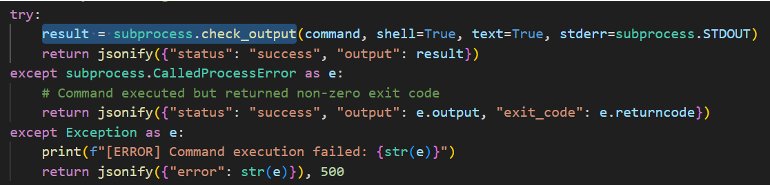 User input is passed directly into a shell command. With shell=True, special operators become active: